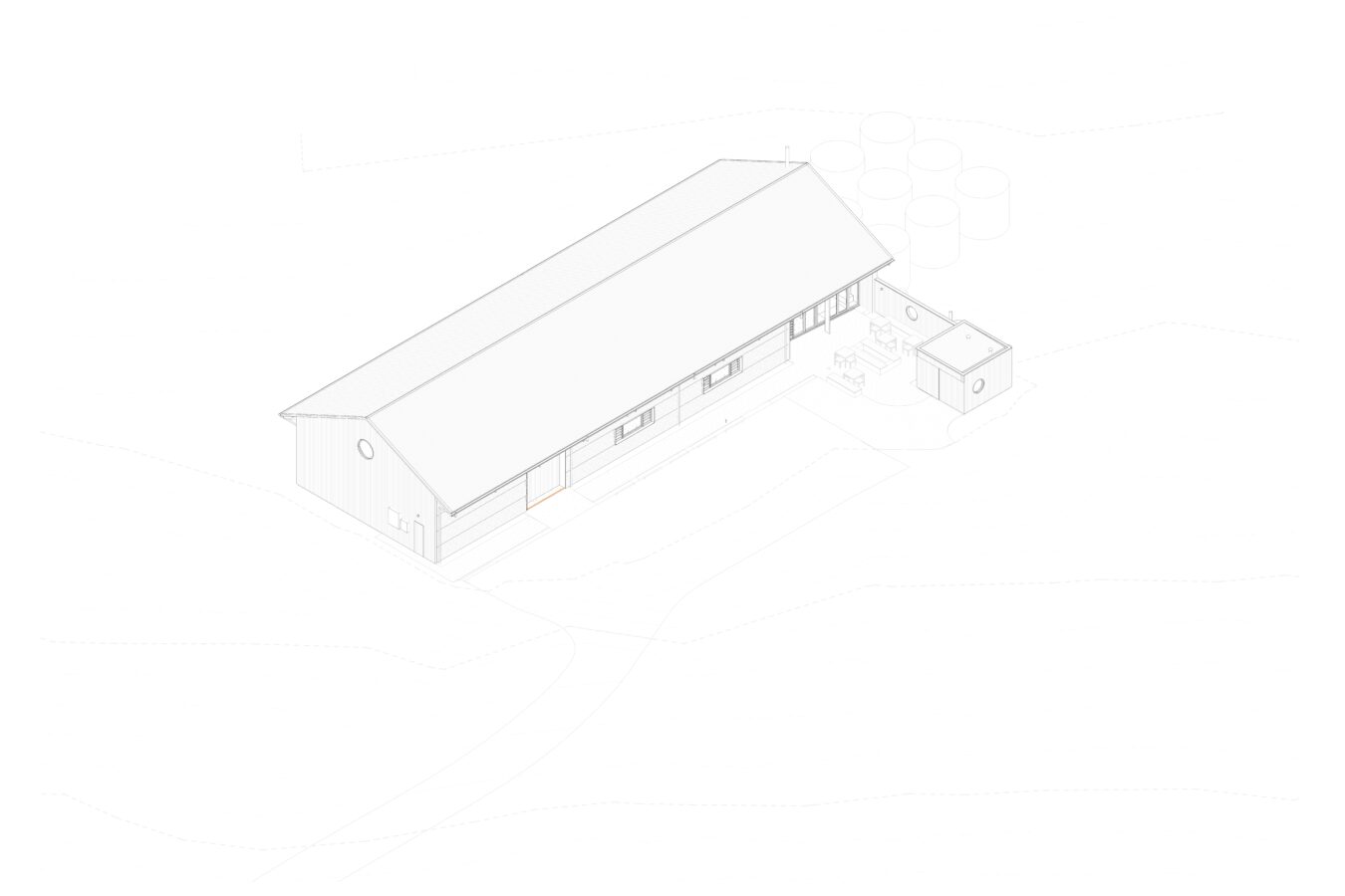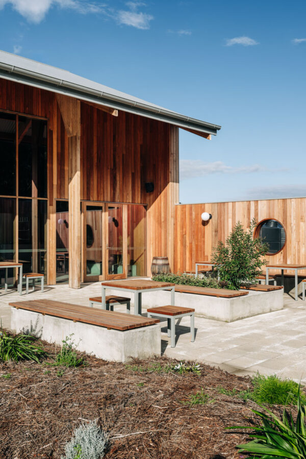 The majority of the structure is dedicated to production; the last two structural modules have been assigned to a tasting room. This incision in the shed envelope allows northerly sun to permeate the hospitality area, while providing views to the remarkable geography of the Hazards and the coastline beyond. Externally, the Windspray colouring allows the building to sit harmoniously in a landscape where earth meets sea and sky. Stay tuned for more on this project. Furneaux Distillery is now open to the public.