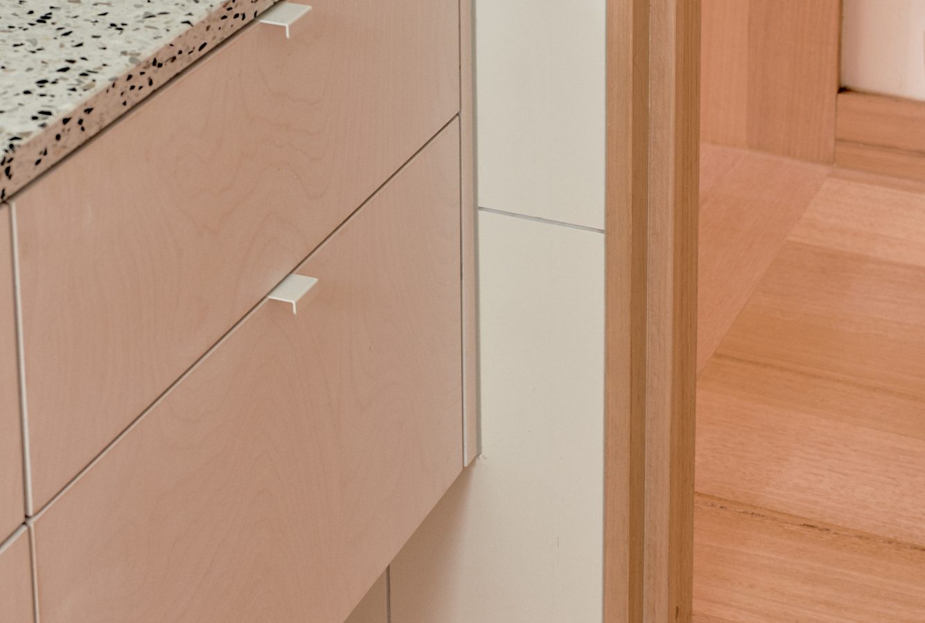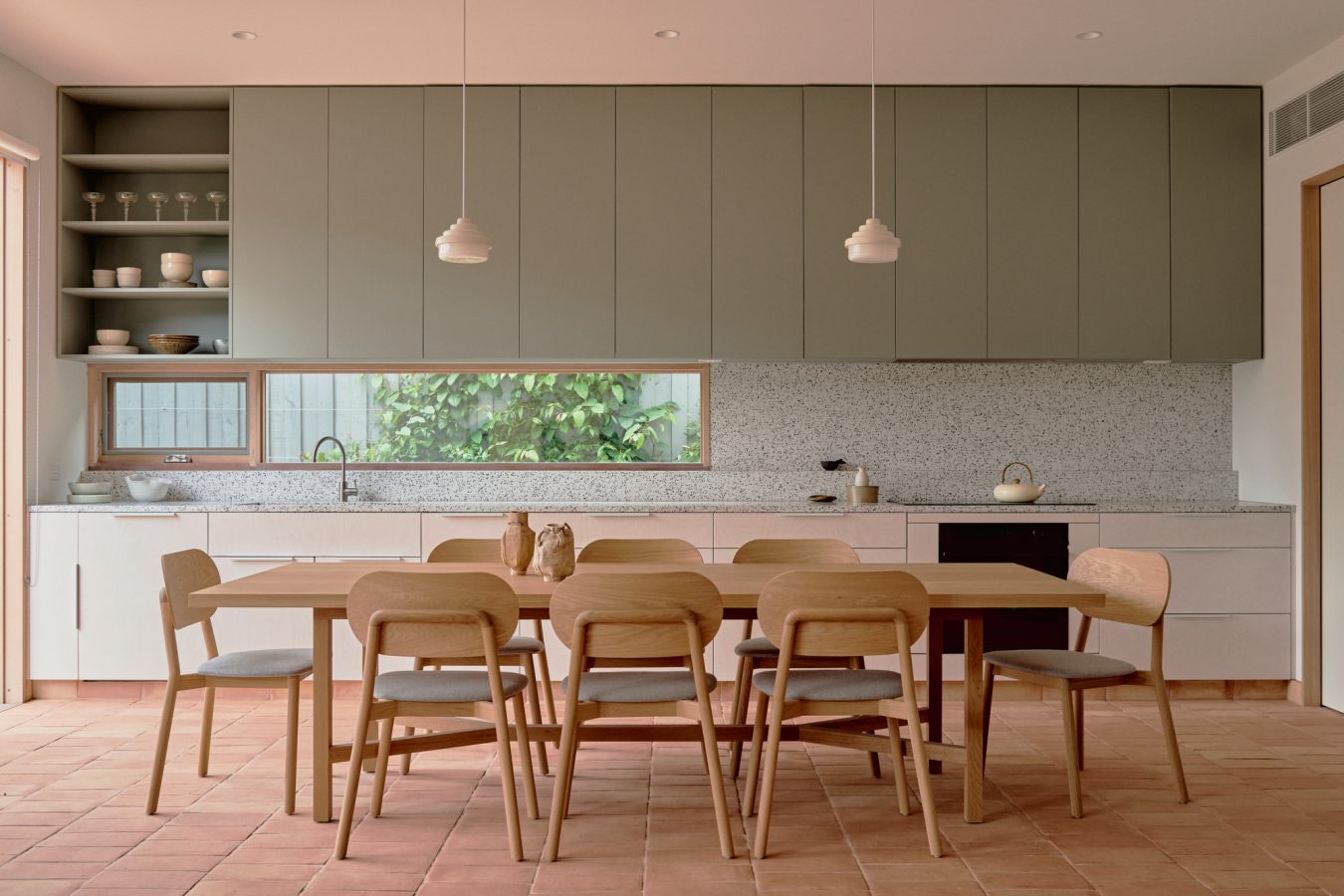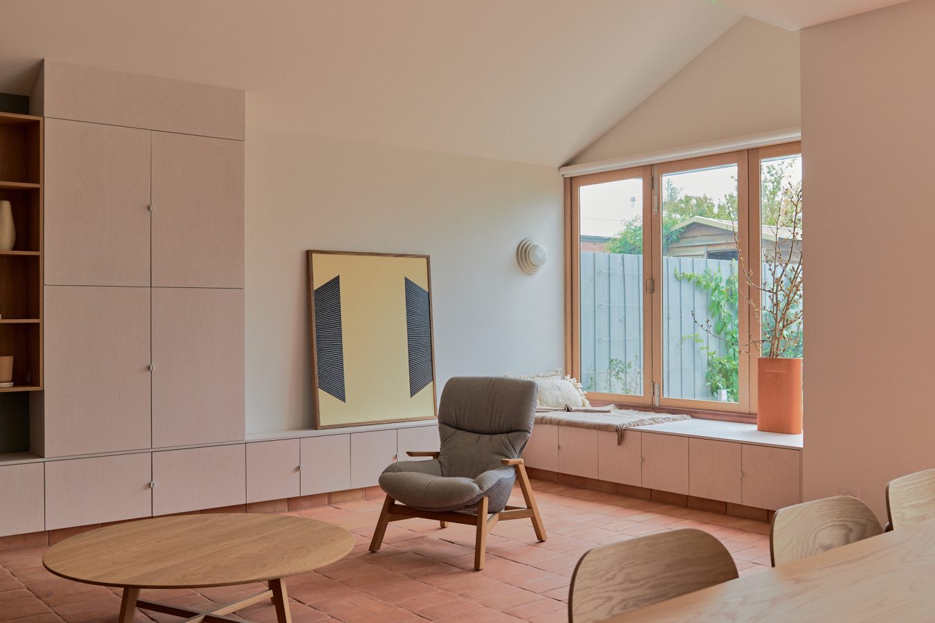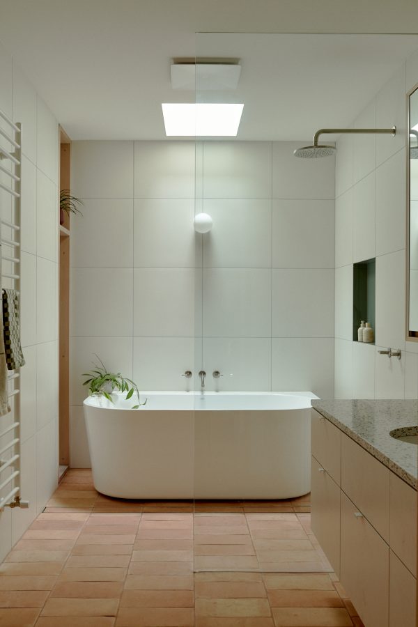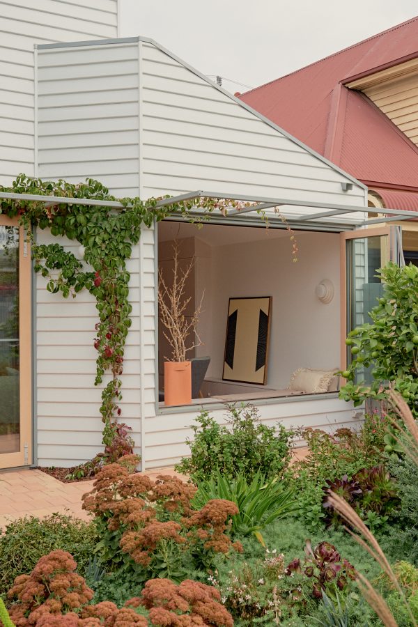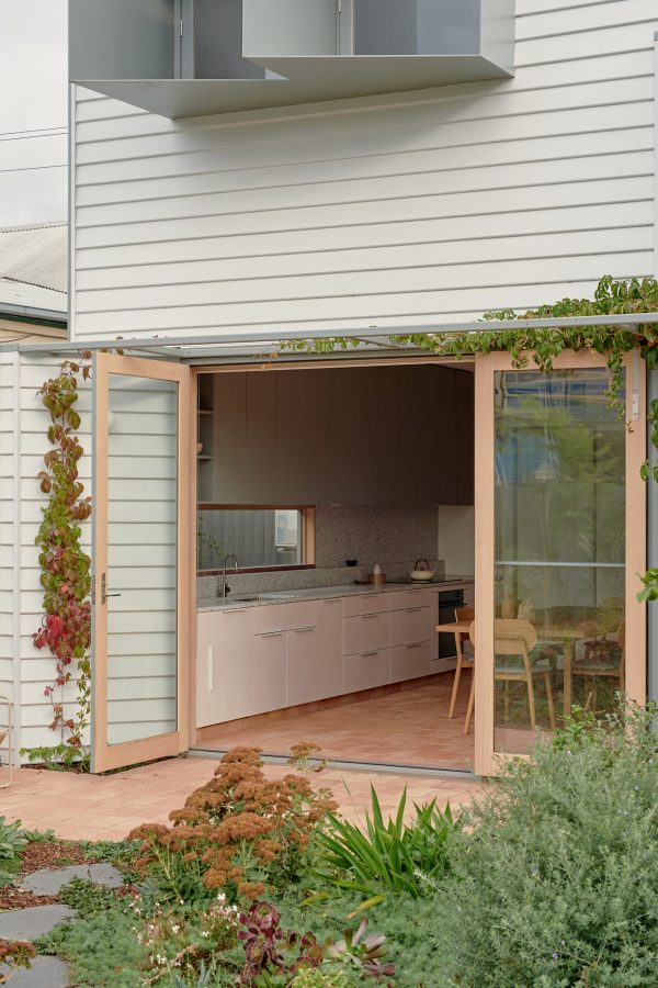 Materiality supports the continuity of the existing weatherboard from old to new. The terracotta floor extends out from the interior to the garden, bringing warmth and richness into the palette — and a sense of borrowed space that expands the modestly sized living quarters.